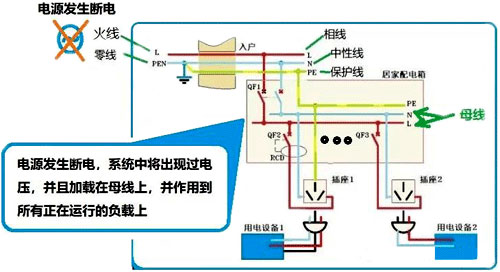 注意:如果系统中出现过电压或者欠电压,母线就会把这种作用分配和传递给所有用电负载。例如某大功率负载起动时,我们会发现家里的照明灯会闪烁一下。其原因就是大功率负载起动造成瞬态低电压,而低电压又被母线传递给照明回路所致。